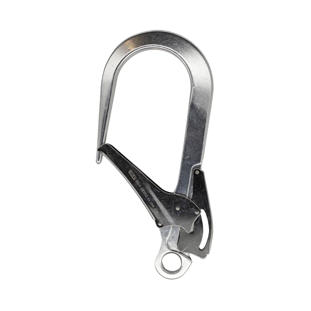 Karabińczyk CS 110 – wykonany ze duraluminium – o otwarciu 110mm – zamknięcie podwójną blokadą automatyczną – waga 910g
